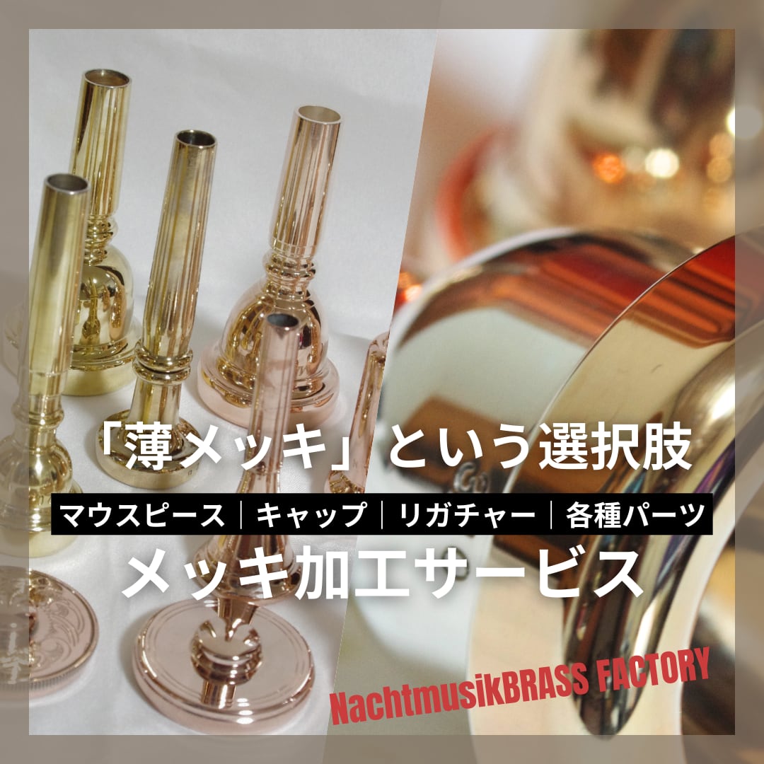 当方のメッキ加工は、トランペットで有名なシルキー氏の「素材による音響への影響」の科学的実証実験により、「メッキ」による音響への影響は無かったという実験結果を推し、音響への影響を目的としておりません。