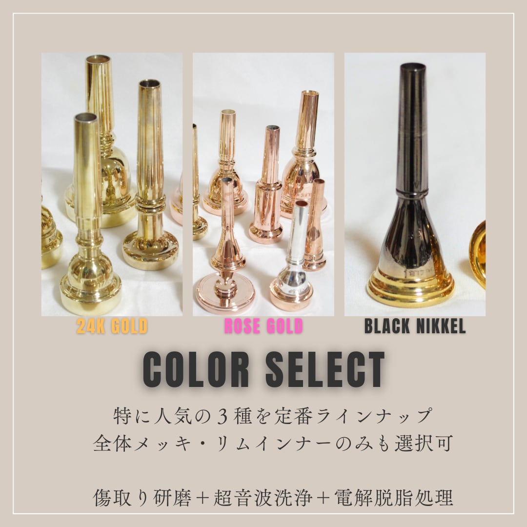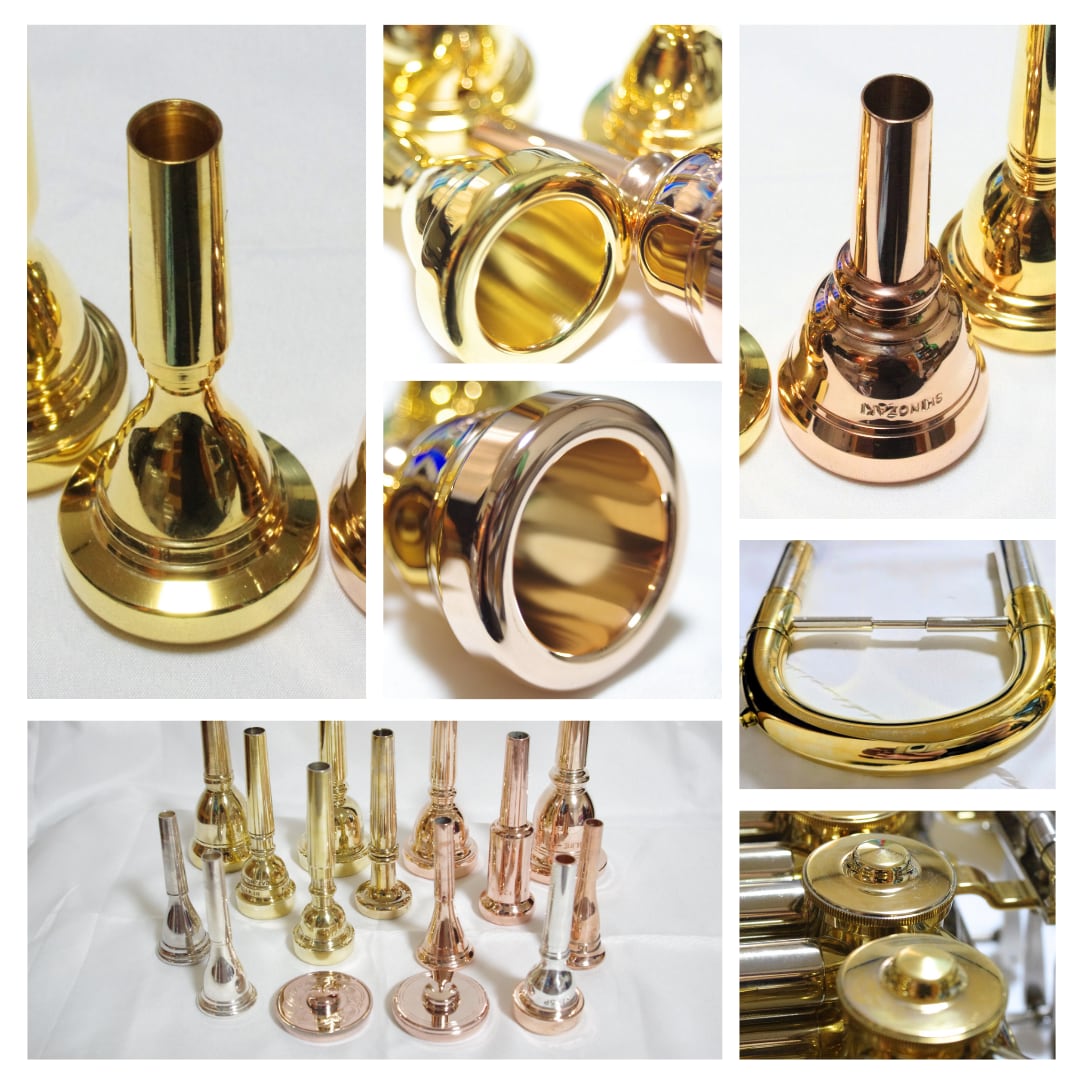 当方のメッキ加工は、トランペットで有名なシルキー氏の「素材による音響への影響」の科学的実証実験により、「メッキ」による音響への影響は無かったという実験結果を推し、音響への影響を目的としておりません。